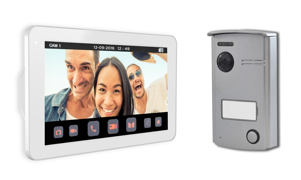 Lorsqu’un visiteur sonne à votre porte, le module extérieur active la caméra et vous transmet l’image directement à votre écran de visualisation, jouant ainsi le rôle de vos yeux. Au même moment, vous pouvez communiquer avec votre visiteur grâce à un système de haut-parleur et micro-intégré.